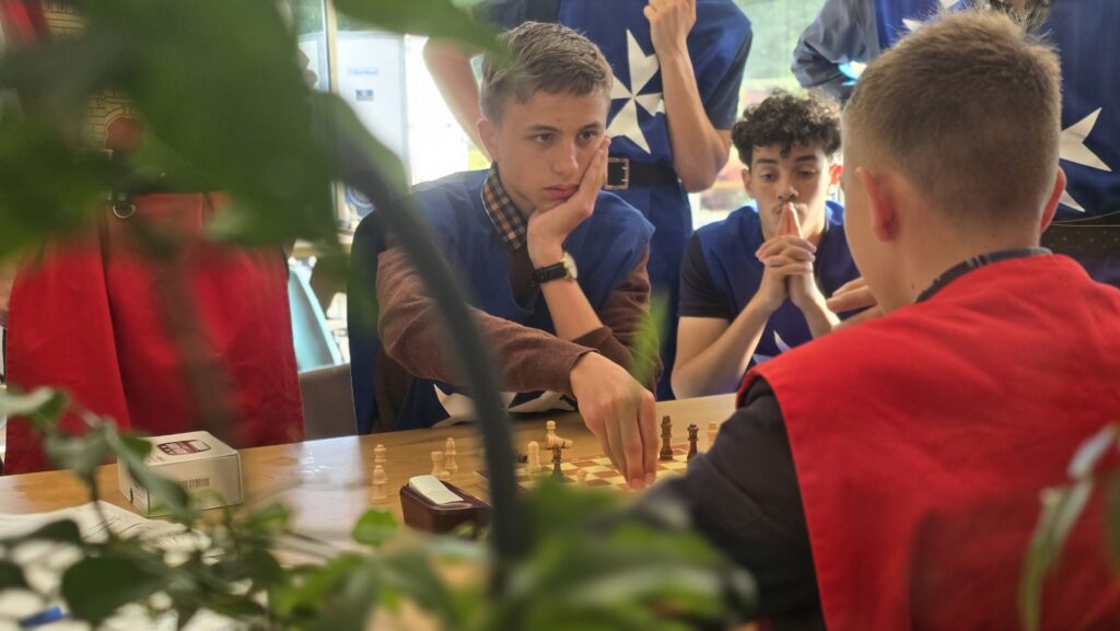 Games, both indoor and outdoor, were also a regular activity in the camp schedule. A jewel in the crown of the games for many years has been the variety of games involving swords and other weaponry. This year, strong, wooden shields and foam maces were added to the camp arsenal. The treasure hunt never ceases to be different every year. This year it was very long but rewarding. Indoor games consisted of chess, Catholic charades, as well as larger, group games. Tournaments for sword battles, chess, and reciting the Ten Commandments of Chivalry were held, with great prizes to enjoy.